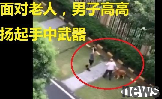 The man ignored the fact that the old man was right next to him, and directly hit the dog with something, and passed by the old man several times.