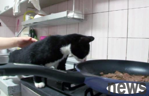 When A Ling is cooking food in the pot, if the cat smells it, it will even jump directly to the side of the wok without restraint and take the food away from the pot.