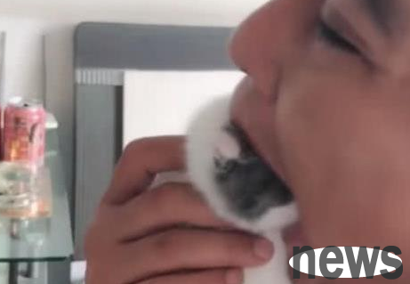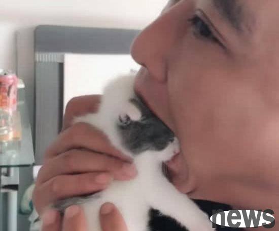 On this day, because the kitten was so cute, the owner took it out to play with. The netizen kept kissing the kitten, and finally couldn't help but stuff the kitten into his mouth. It looked like he wanted to eat the kitten. At this time, the female cat was shocked when she saw the owner's behavior, thinking that her baby was going to be swallowed alive. The mother cat looked at the owner in horror, and was very frightened.