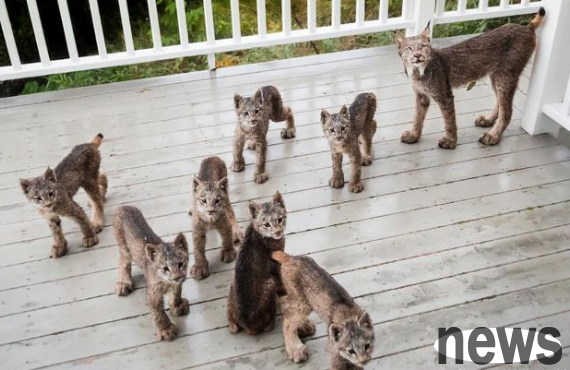 The mother lynx and her seven little lynxes appeared in front of their window again, playing on the balcony as before. Seeing such an intimate interaction between them, it was hard to believe that these cute "cats" could be such ferocious hunters in the forest!
