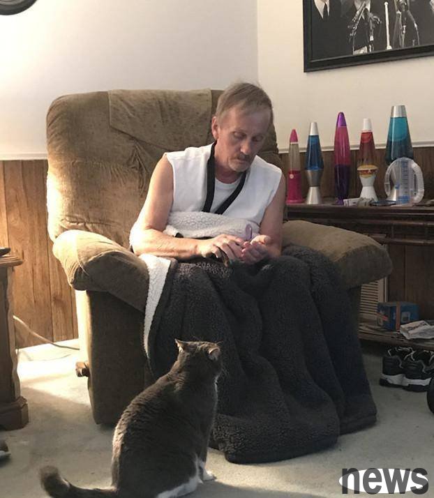 A month ago, Kirk was about to go out to work, when suddenly, his heart disease relapsed and fell to the ground. After seeing it, Shots immediately ran back to the bedroom, jumped onto Tammy's bed, and let out a roar like a lion. Schott had never made such a loud roar before, and Tammy immediately felt something was wrong. She walked out and found Kirk lying on the ground.