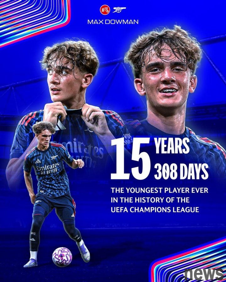 In this round of the Champions League, Arsenal teenager Dauman, who is 15 years and 308 days old, became the youngest player in the history of the Champions League!