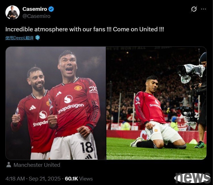 In this round of Premier League focus, Manchester United defeated Chelsea 2-1. After the game, Casemiro, who was dyed red in this game, posted a message to celebrate the victory.