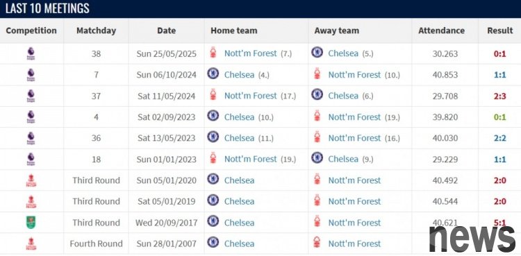In the 8th round of the Premier League, Chelsea faced Nottingham Forest away from home. In the past 10 meetings between the two sides, Chelsea had 6 wins, 3 draws and 1 loss, scoring 20 goals and conceding 8 goals.