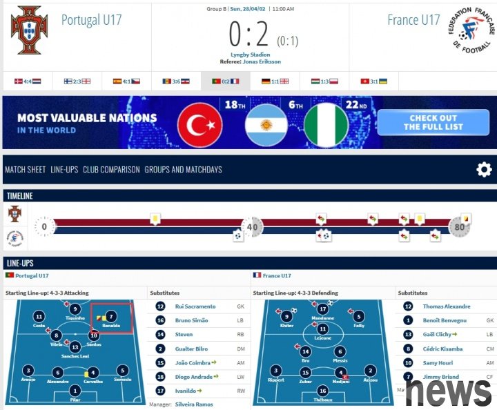 1. 2002, U17 European Cup, Portugal U17 0-2 France U17 (2 yellows to 1 red)