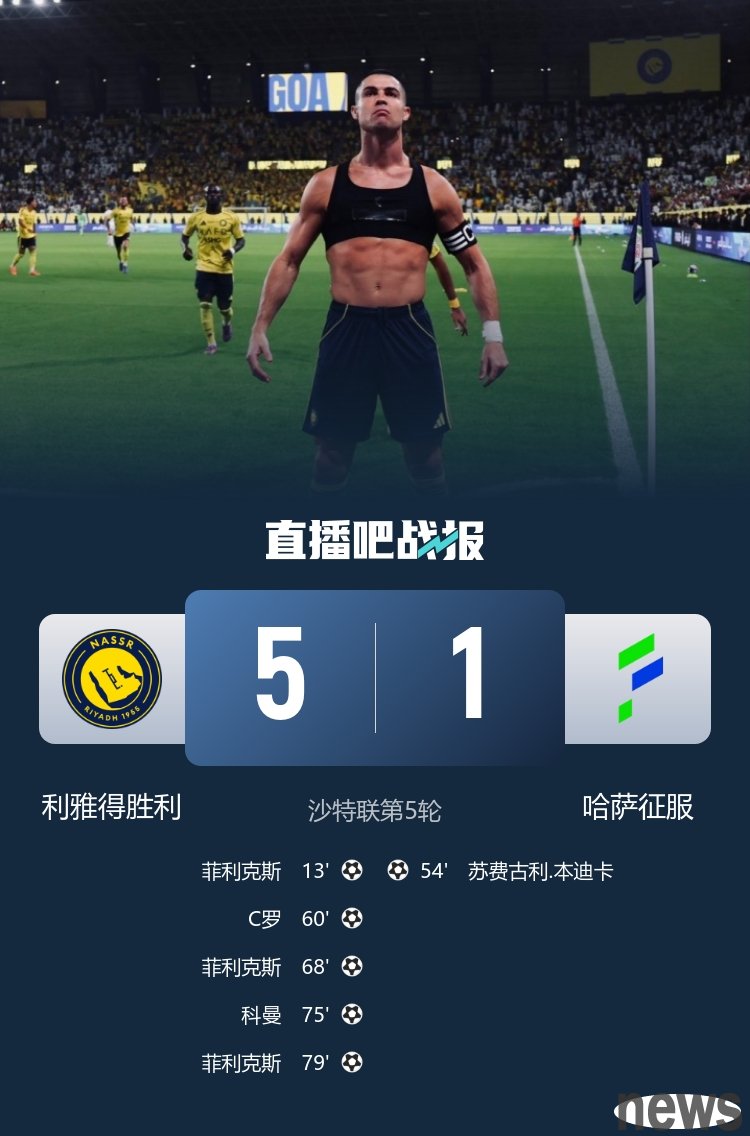 In the 5th round of the Saudi Arabian League, Riyadh won 5-1 with a 5-1 victory over Al-Hasa Conquer, Felix's hat-trick, and Cristiano Ronaldo's hat-trick.