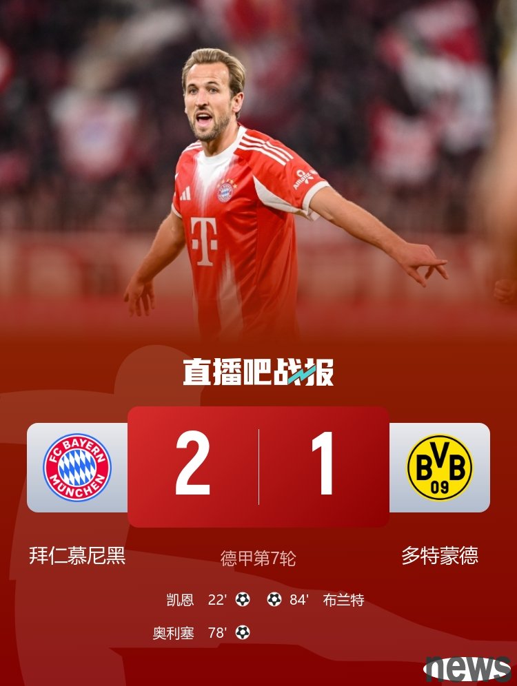 In the 7th round of the Bundesliga, Bayern won the German National Derby 2-1 Dortmund. Kane and Olise scored.