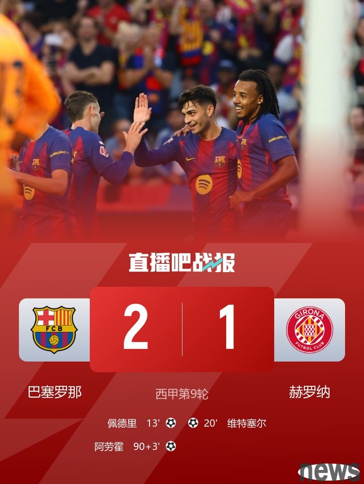 Reach the top first! Barcelona 2-1 Girona. Araujo played as center and scored a stoppage-time winner against Pedri