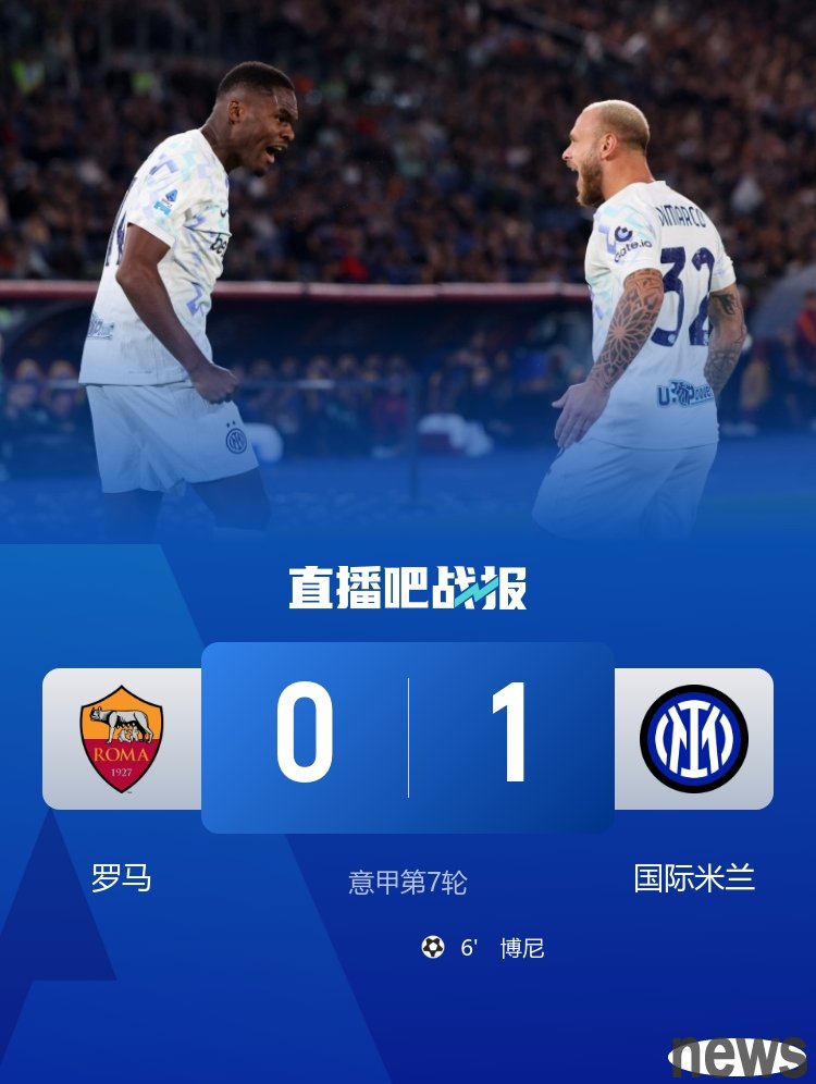 In the 7th round of Serie A, Inter Milan beat Roma 1-0 away, Boni won.