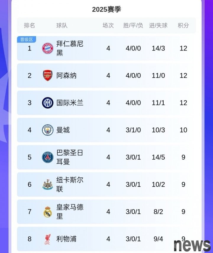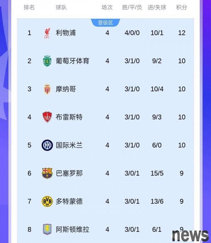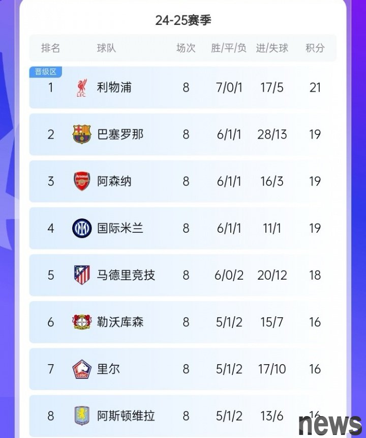 In last season, only 4 of the top 8 teams after the halfway stage of the Champions League advanced to the knockout rounds, and 4 teams were squeezed out of the pass zone. Although this is related to the team's strength and schedule, it also serves as a reminder to the top 8 this season that they cannot be careless.
