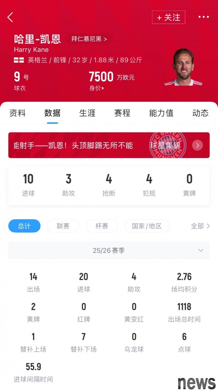 According to German "Sports Photos" reporter Falk, Kane once attracted the interest of New Moon, but the players finally chose to join Bayern.